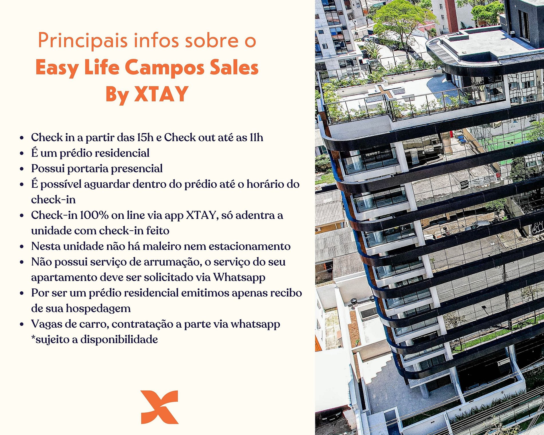 Conheça o Easy Life Campos Salles by Xtay ! A Xtay é uma plataforma de estadias flexíveis 100% digital, perfeita para quem está cansado do modelo tradicional de hospedagem. Operamos apartamentos mobiliados de forma profissional para quem procura o conforto de um lar, com muita tecnologia e um atendimento full time disponível 24 horas de forma remota.