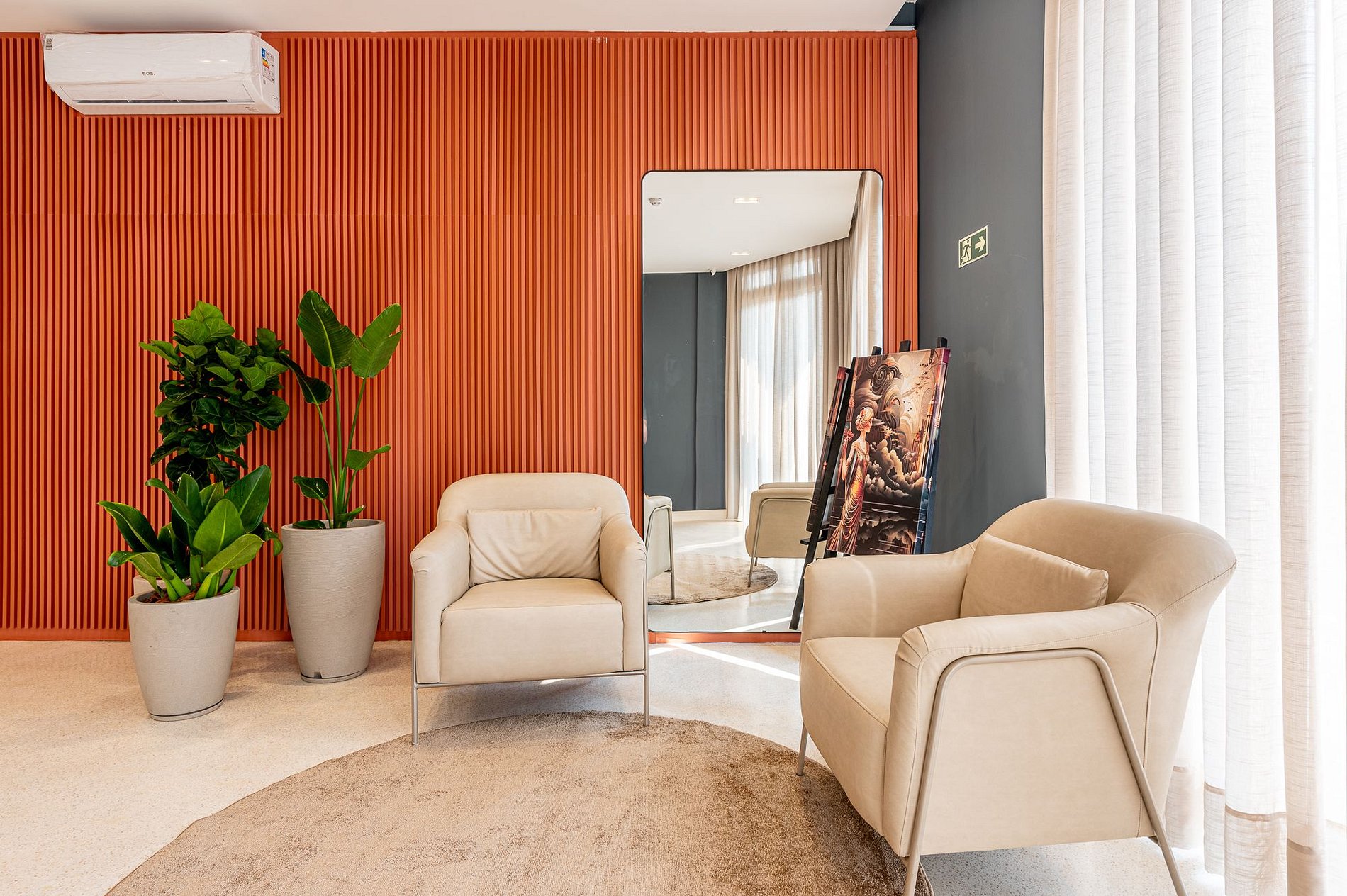 O acesso ao espaço acontece por reconhecimento facial. A senha da unidade será enviada após o seu check-in, através do aplicativo Xtay ou Web-check-in, conforme informado por mensagem. O condomínio conta academia, lavanderia paga à parte e mercadinho 24hrs