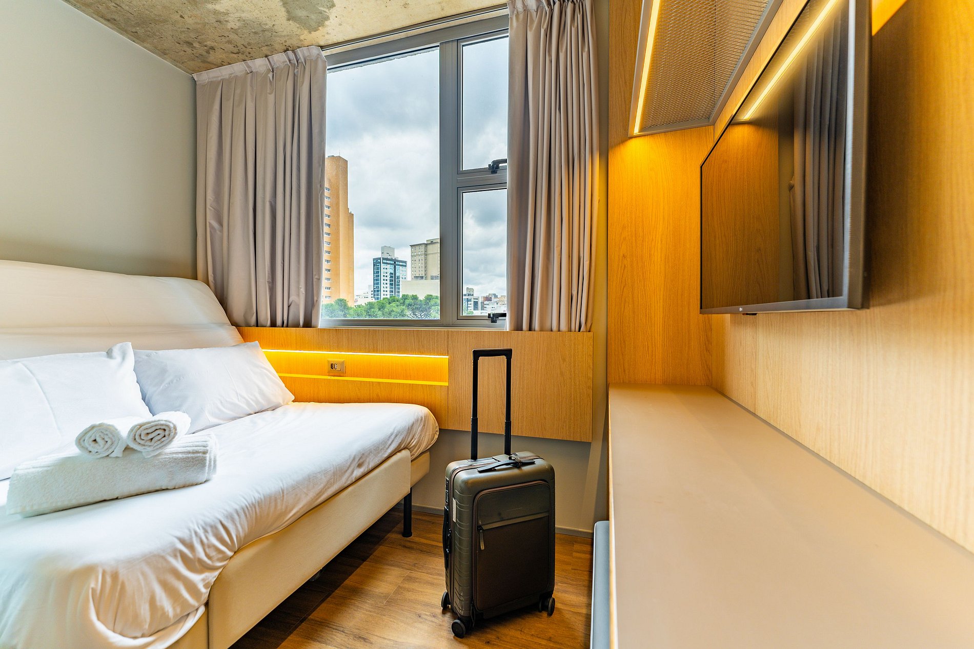 Mais do que um quarto, aqui você aproveita espaços modernos e integrados para uma estadia completa!