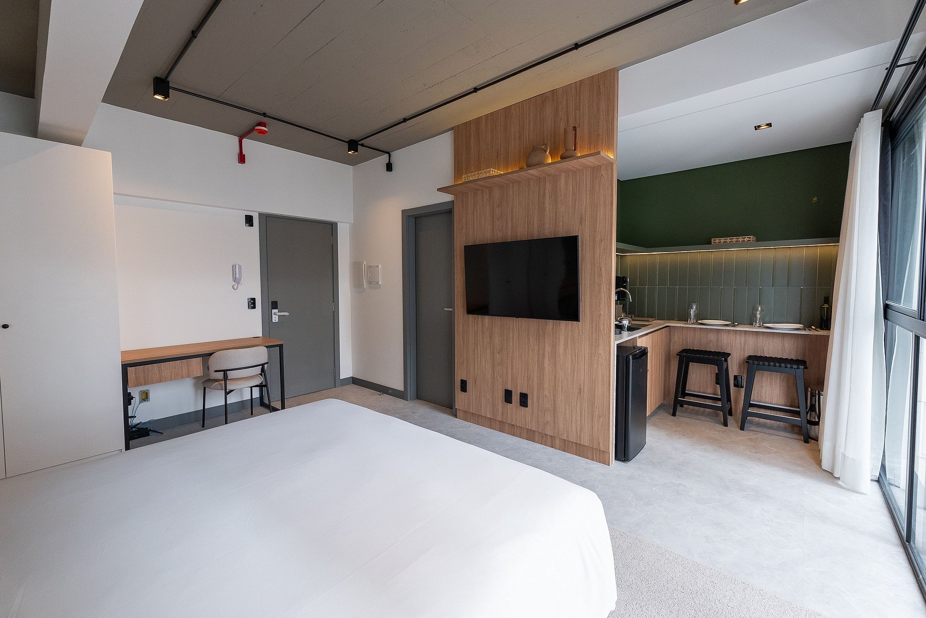 Seja bem-vindo(a) ao seu refúgio de 39m², onde cada detalhe foi pensado para tornar sua estadia mais leve, prática e acolhedora. Ideal para quem viaja a trabalho ou quer relaxar com estilo, esse estúdio une conforto, autonomia e uma estrutura completa.
