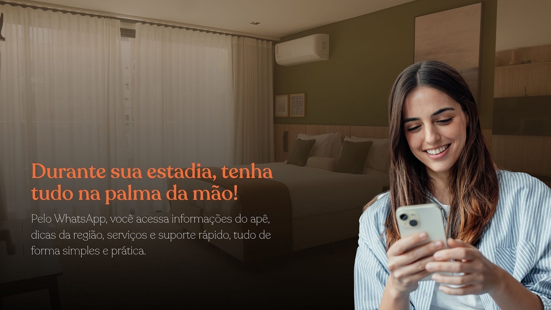 O check-in é 100% autônomo e obrigatório para liberar o acesso à unidade e deve ser feito pelo nosso aplicativo (Android e iOS) ou via web check-in. O link será enviado assim que a reserva for confirmada.