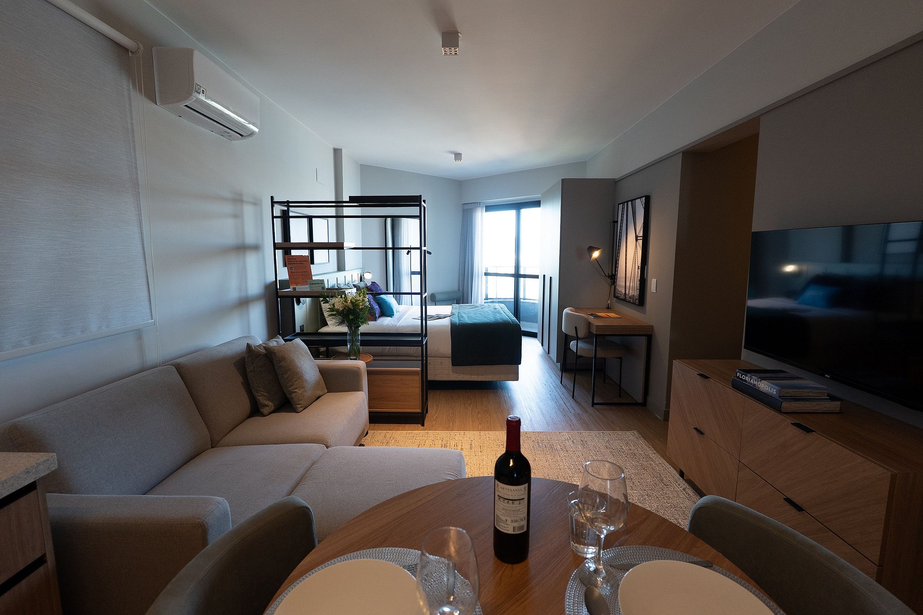 Imagine-se relaxando em um studio moderno e aconchegante, cuidadosamente planejado para oferecer conforto, praticidade e estilo em cada detalhe. Com 42m², este espaço é perfeito para quem busca uma estadia funcional e acolhedora, seja para descansar, trabalhar ou explorar a cidade.