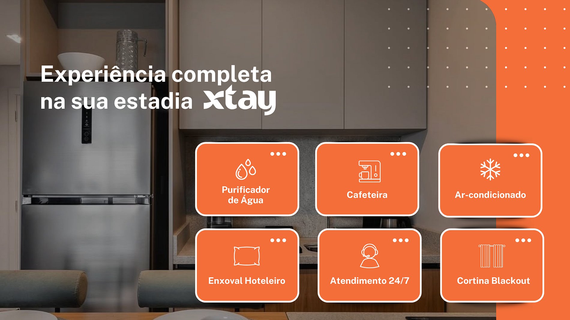 A Xtay é mais que uma hospedagem no modelo tradicional – é a solução inteligente para quem busca a liberdade de um lar, com a tecnologia e a praticidade que só a nossa plataforma pode oferecer. Operamos apartamentos mobiliados de forma profissional para que sua única preocupação seja aproveitar ao máximo sua estadia. E o nosso atendimento é 24/7 de forma remota.