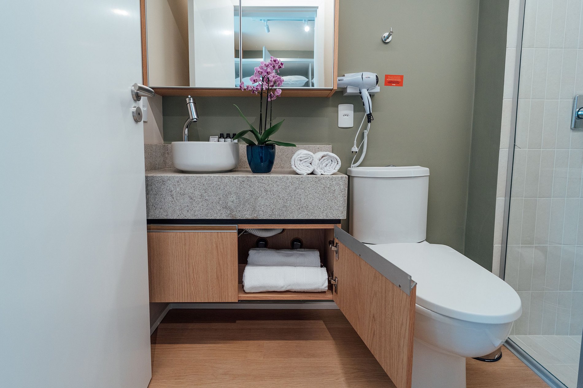 O que você encontrará no imóvel: Roupas de cama e banho Toalha de piso Kit inicial com papel higiênico, sabonete, shampoo e condicionador Itens não repostos durante a estadia.