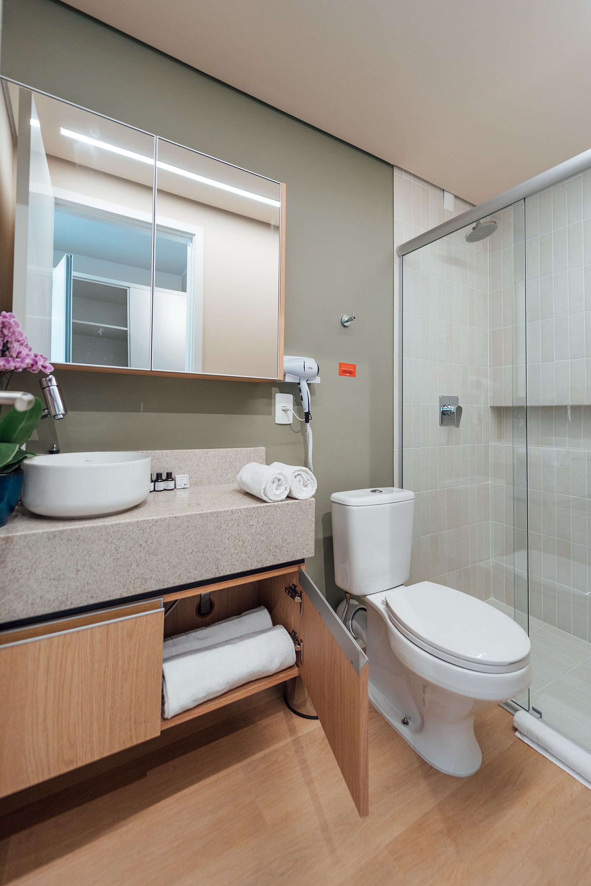 O empreendimento oferece conveniência e segurança, com mercadinho 24 horas, lavanderia paga à parte, Wi-Fi nas áreas comuns, elevador e acesso à portaria por reconhecimento facial e atendimento 24 horas.
