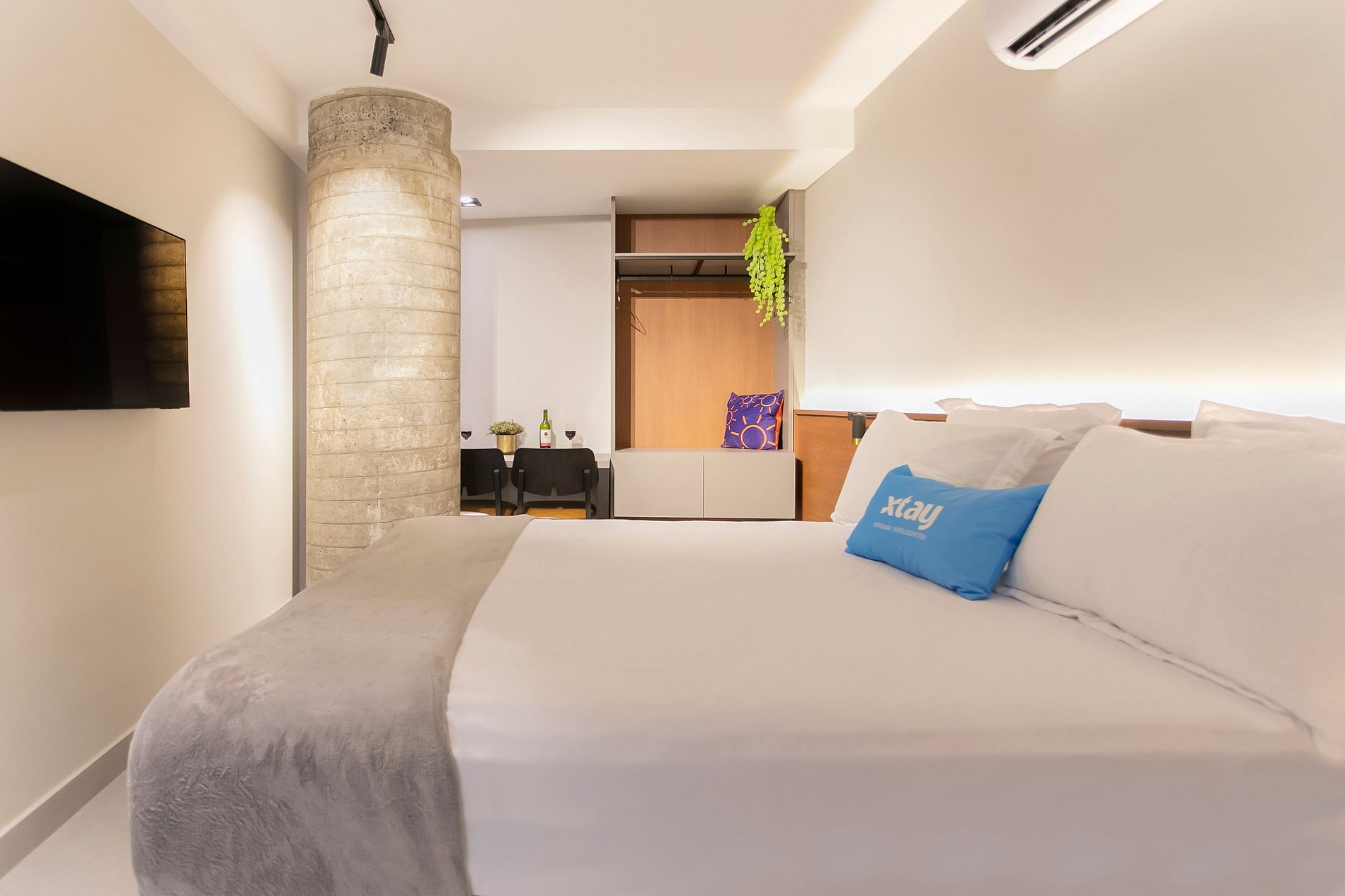 O acesso ao espaço acontece por reconhecimento facial. A senha da unidade será enviada após o seu check-in, através do aplicativo Xtay ou Web-check-in conforme informado por mensagem. O condomínio conta com academia, piscina na cobertura e lavanderia.