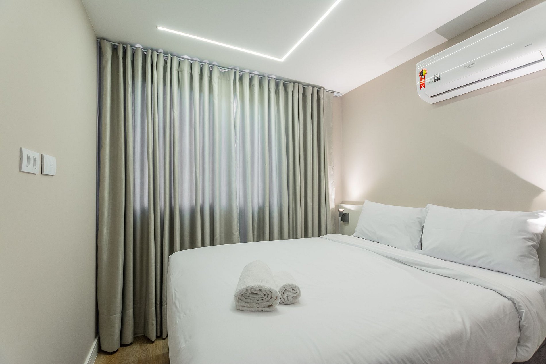 Access to the space is through facial recognition. The unit password will be sent after your check-in, via the Xtay app or web check-in as informed by message. The building offers a gym, coworking space, and a meeting room.