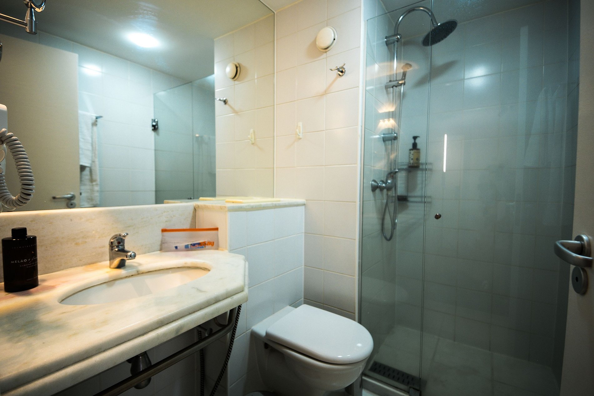 34m² apartment with 1 queen-size bed in the bedroom equipped with bed linen and air conditioning, closet with iron and hangers, sofa bed in the living room, TVs with access to cable channels, home office area, compact kitchen with 2-burner portable cooktop, minibar, Nespresso machine, sandwich maker, microwave, water filter integrated into the faucet, 2-seat dining table, sink with cabinet, kitchen utensils with cookware set, private bathroom with integrated shower box, bidet shower, bath amenities, hairdryer, magnifying mirror and bath linen