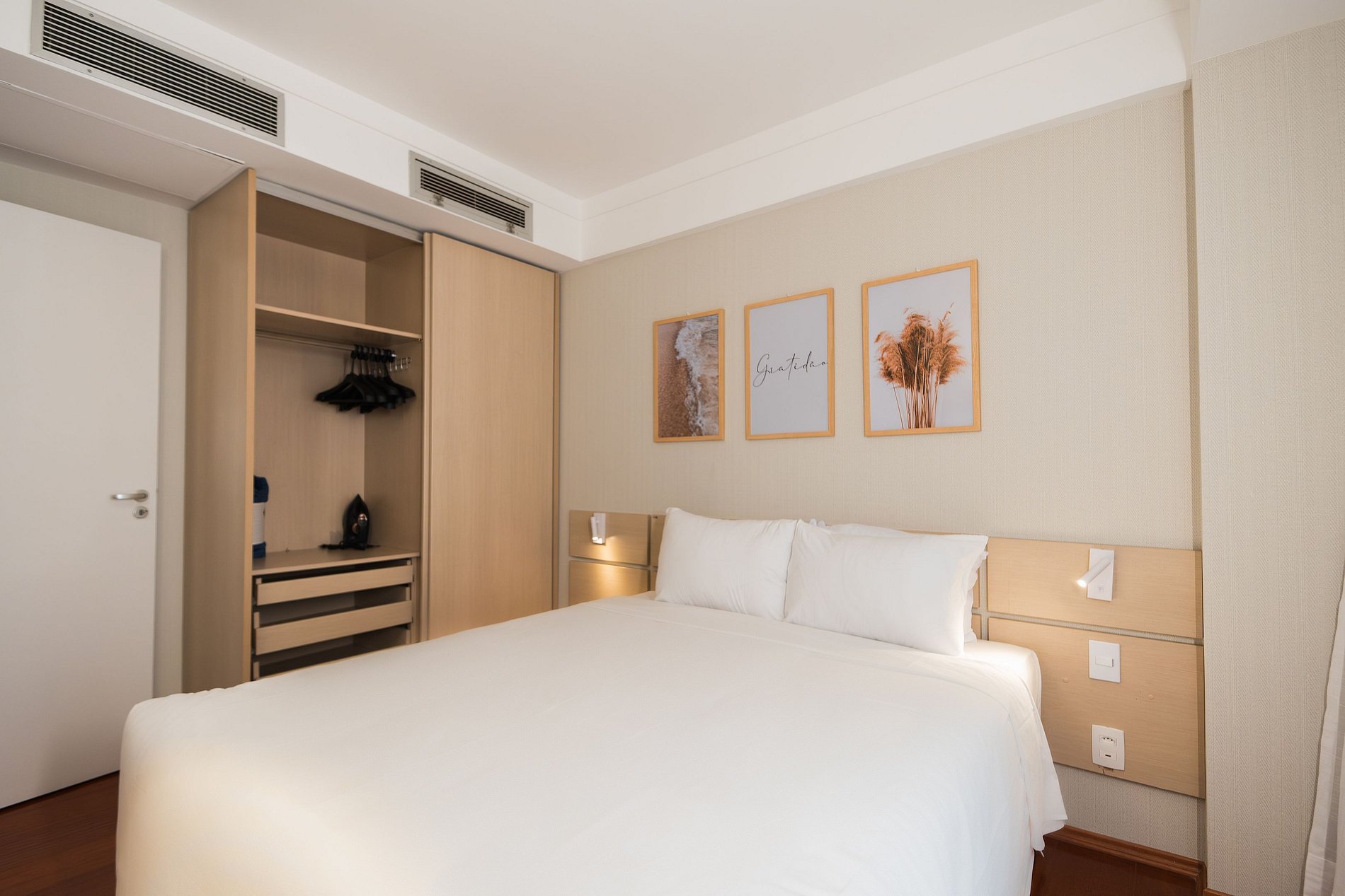 46m² apartment with 2 bedrooms. 1st bedroom with queen bed, air conditioning, closet with iron and hangers, 42' smart TV with access to cable channels. 2nd bedroom with single bed and closet with hangers and mechanical ventilation. In addition to a sofa bed in the living room and 50' TV with access to cable channels, air conditioning, table for home office, compact kitchen with portable 1-burner cooktop, minibar, Nespresso, sandwich maker, microwave, water filter integrated into the tap, table dining room with 2 seats, sink with cabinet, kitchen utensils with cookware set, private bathroom with bathtub and integrated shower, hygienic shower, bath amenities, hairdryer, magnifying mirror and bed and bath linen.