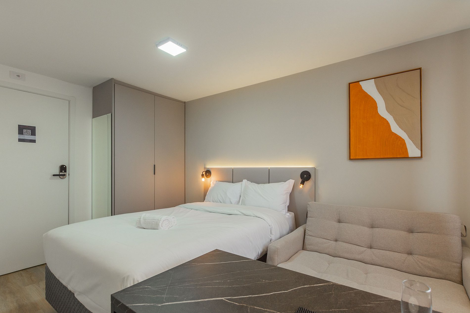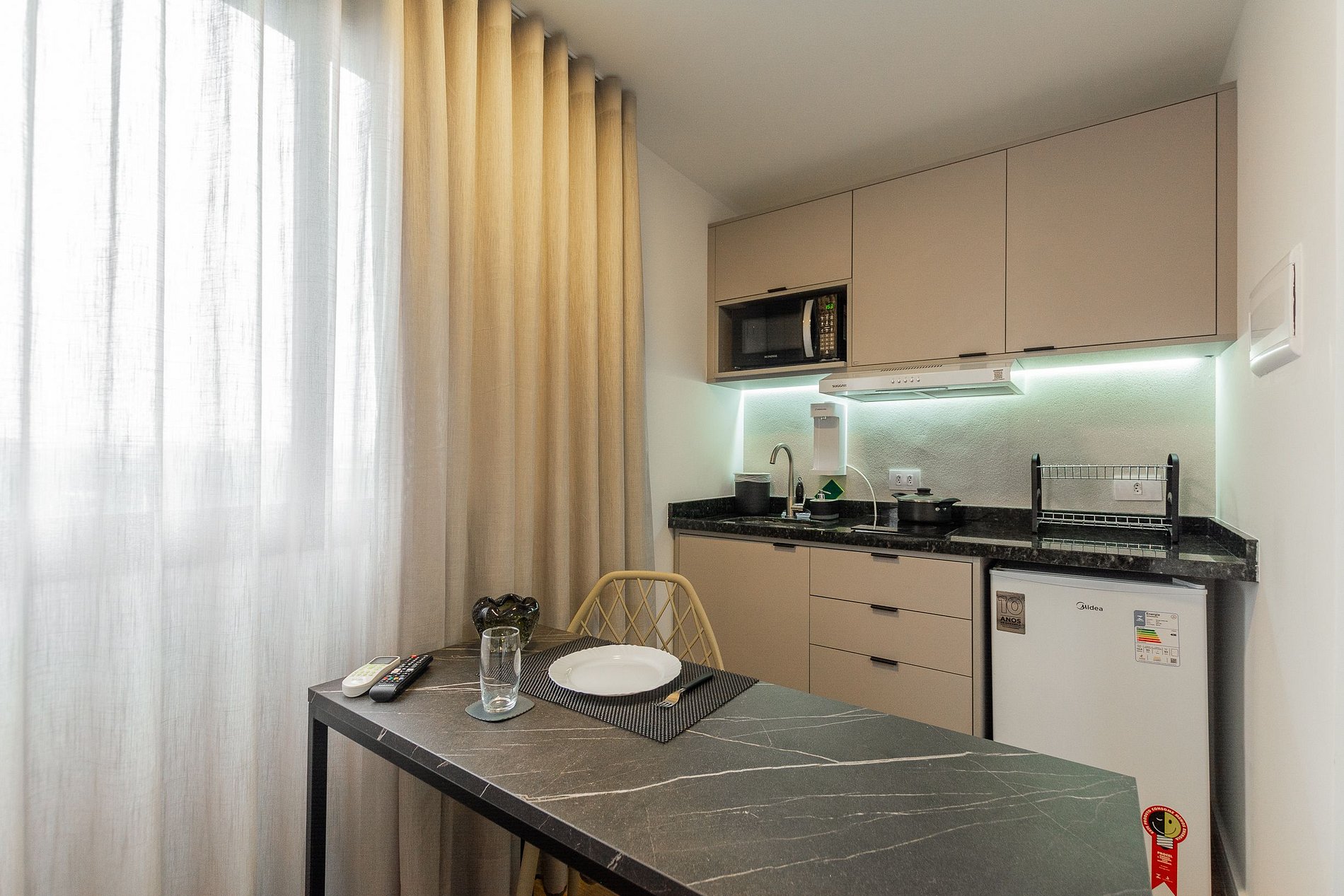 Espaço pet, Espaço Co-working, Unidades de 23 a 35m2, Academia e Lavanderia, Limpeza quinzenal inclusa dependendo do plano, Studios e apartamentos de 1 quarto, Pagamento via Cartão de crédito ou pix, Unidades Mobiliadas+ Enxoval completo inclusos, Moradia sem Burocracia, sem fiador ou cheque calção, Contas condomínio, água, luz, gás e Wi-fi inclusas no valor.