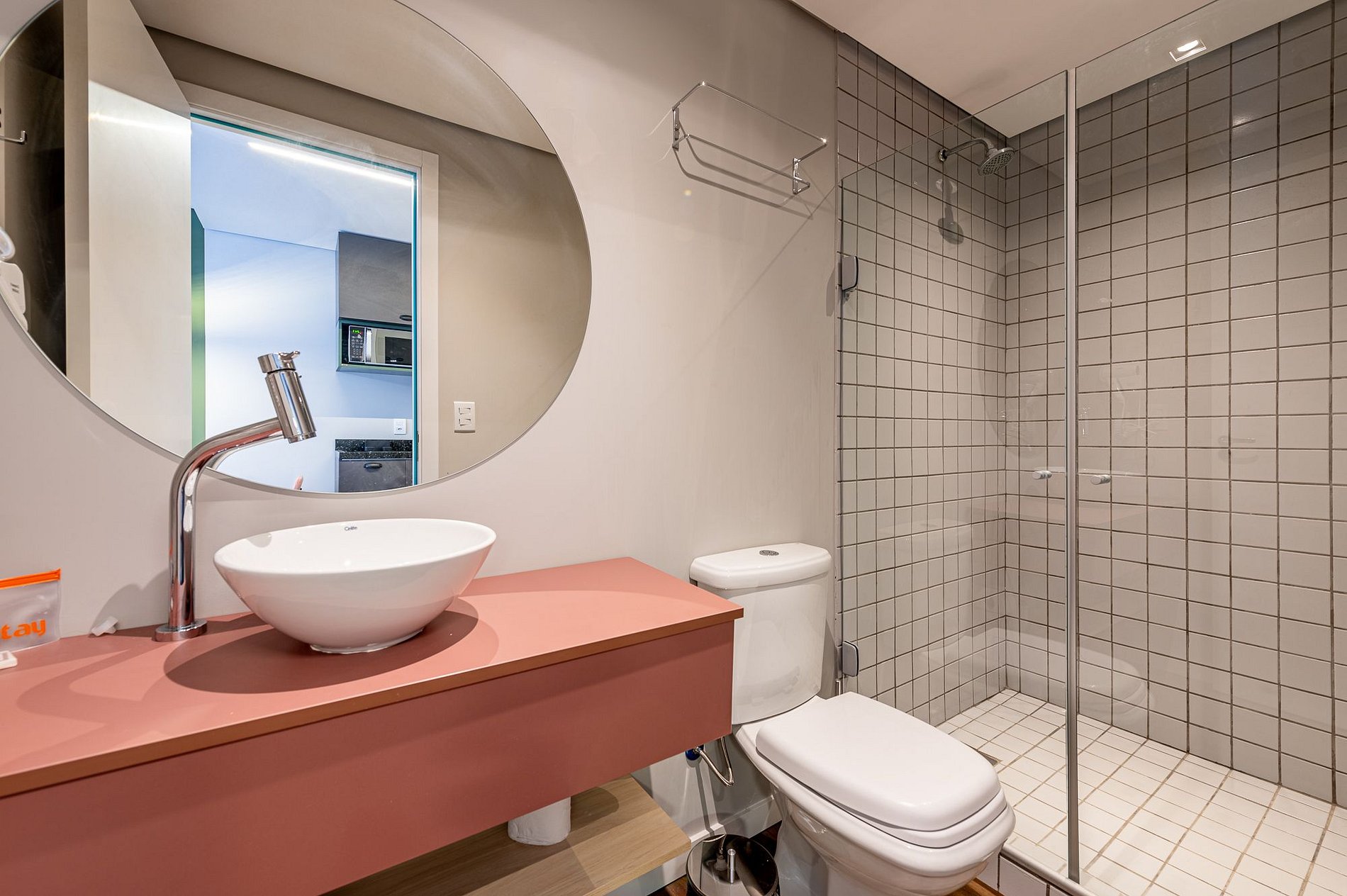 Apartamento Studio clássico com 29m² , cozinha equipada, chuveiro a gás, internet de alta velocidade, TV smart, cafeteira, vaporizador, filtro de água, cama Queen, ar condicionado, micro-ondas, espaço para home office ou estudo, geladeira e secador de cabelos. Um espaço inteligente que equilibra funcionalidade e estilo para oferecer conforto e praticidade. Acesso por elevador ao quartos, Rooftop com discoteca, sala fitness, disponivél no condomínio coworking nos andares 5, 6 e 7º andar, lavanderia com secadora sendo uso comum paga.