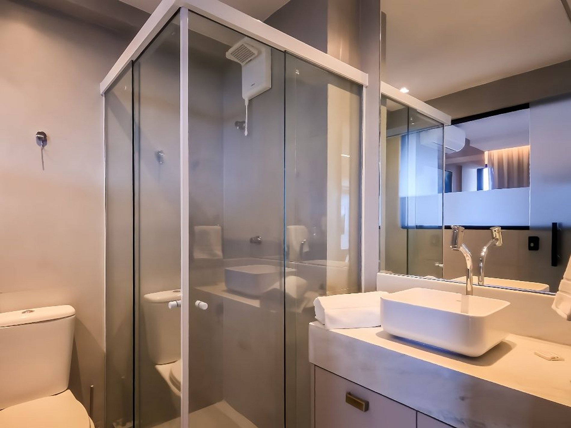 Access to the property is done via facial recognition. The unit password will be sent after your check-in, through the Xtay app or Web check-in as informed by message. The condominium features a pool, gym, paid laundry services, and a mini market.