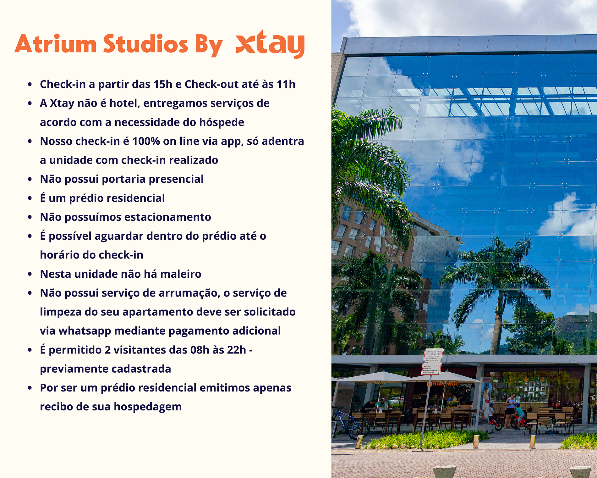 Access to the space is done via facial recognition. The unit password will be sent after your check-in, through the Xtay app or Web check-in, as informed via message. The condominium offers a mini-market.