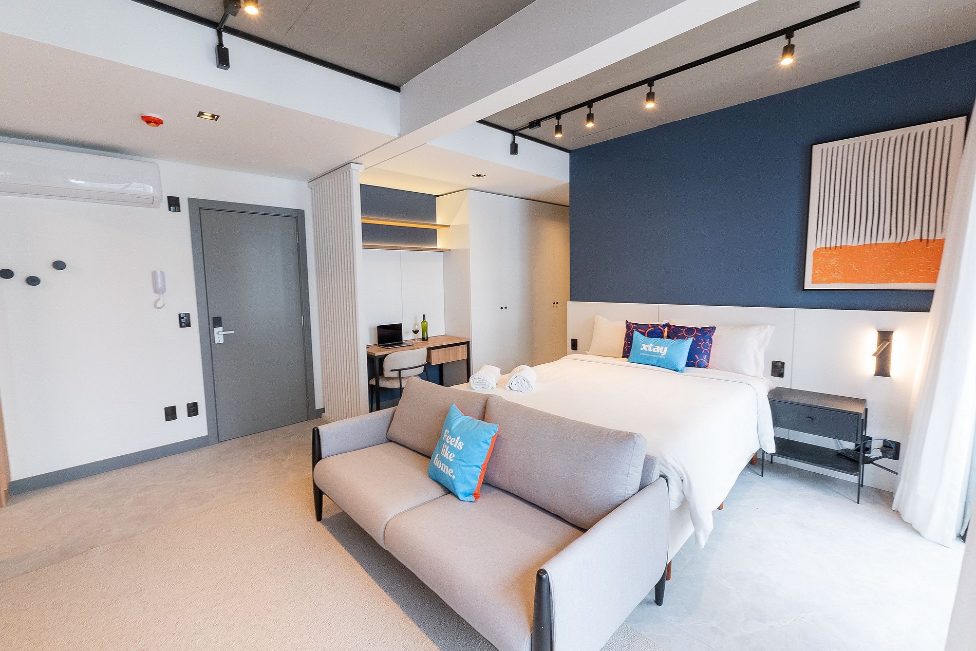 Welcome to Olso by Xtay, where every detail has been thoughtfully designed to make you feel at home, even when you're far away. Our apartments, ranging in size from [20m²] to [62m²], accommodate up to [2 guests] with all the comfort and practicality you deserve. Fully furnished, they are ready to turn your stay into a complete and unforgettable experience. Experience the Best of Downtown Florianópolis with Practicality, Sophistication, and Technology Located at Rua Adolfo Melo, 41, in the heart of Florianópolis, Olso by Xtay puts you at the center of everything the city has to offer. A region rich in culture, gastronomy, convenience, and leisure—perfect for those seeking quality of life and ease. Just minutes from the building, you’ll find the Álvaro de Carvalho Theater (TAC), one of the city’s most important cultural spaces, only 300 meters away (about a 4-minute walk). Also nearby is Praça XV de Novembro, a historic landmark and local meeting point, ideal for a pleasant outdoor stroll. If you enjoy green spaces, the Parque Ecológico do Córrego Grande, a preservation area with trails and lush nature, is just a 10-minute drive (4 km) away. For leisure moments, the iconic Avenida Beira-Mar Norte is 1.5 km away (approximately a 5-minute drive), offering a charming waterfront for walking, cycling, and spectacular views of North Bay. Additionally, the closest beaches, such as Praia de Jurerê and Praia do Campeche, are about a 25- to 30-minute drive, providing the perfect weekend escape. The region is a gastronomic hub, with options to suit all tastes. Highlights include renowned restaurants and charming cafes located within a 5- to 10-minute walking radius. Moreover, the building features an on-site convenience store, making daily life even easier. Beiramar Shopping, one of the city's most sophisticated malls, is just a 5-minute drive (1.5 km) away, offering shops, cinemas, and various entertainment options. Florianópolis’ Hospital de Clínicas is a 10-minute drive (3 km). Supermarkets, pharmacies, and banks are within short walking distance. Nearby Olso by Xtay, you’ll find CentroSul, Florianópolis’ main event and convention center, just a 5-minute drive (2 km)—perfect for those attending or organizing major events. Hercílio Luz International Airport is only 15 minutes away by car (12 km), ensuring easy access for both national and international travel. Your connected, urban lifestyle close to everything is right here. Come visit and be amazed! At Xtay, we’ve thought of everything to make your stay practical and hassle-free. We offer services such as on-demand cleaning and towel replacement, always prioritizing your comfort and well-being (additional fees apply). [And the best part: your pet is more than welcome here!] Contact us for more information and applicable rules. To top it off, we have a 24-hour autonomous mini-market on the ground floor, ensuring you have everything you need at any time of the day or night. Xtay is more than a traditional accommodation—it's the smart solution for those seeking the freedom of a home with the technology and practicality that only our platform can offer. We professionally operate furnished apartments so that your only concern is to make the most of your stay. Plus, our 24/7 remote support ensures assistance anytime you need it.