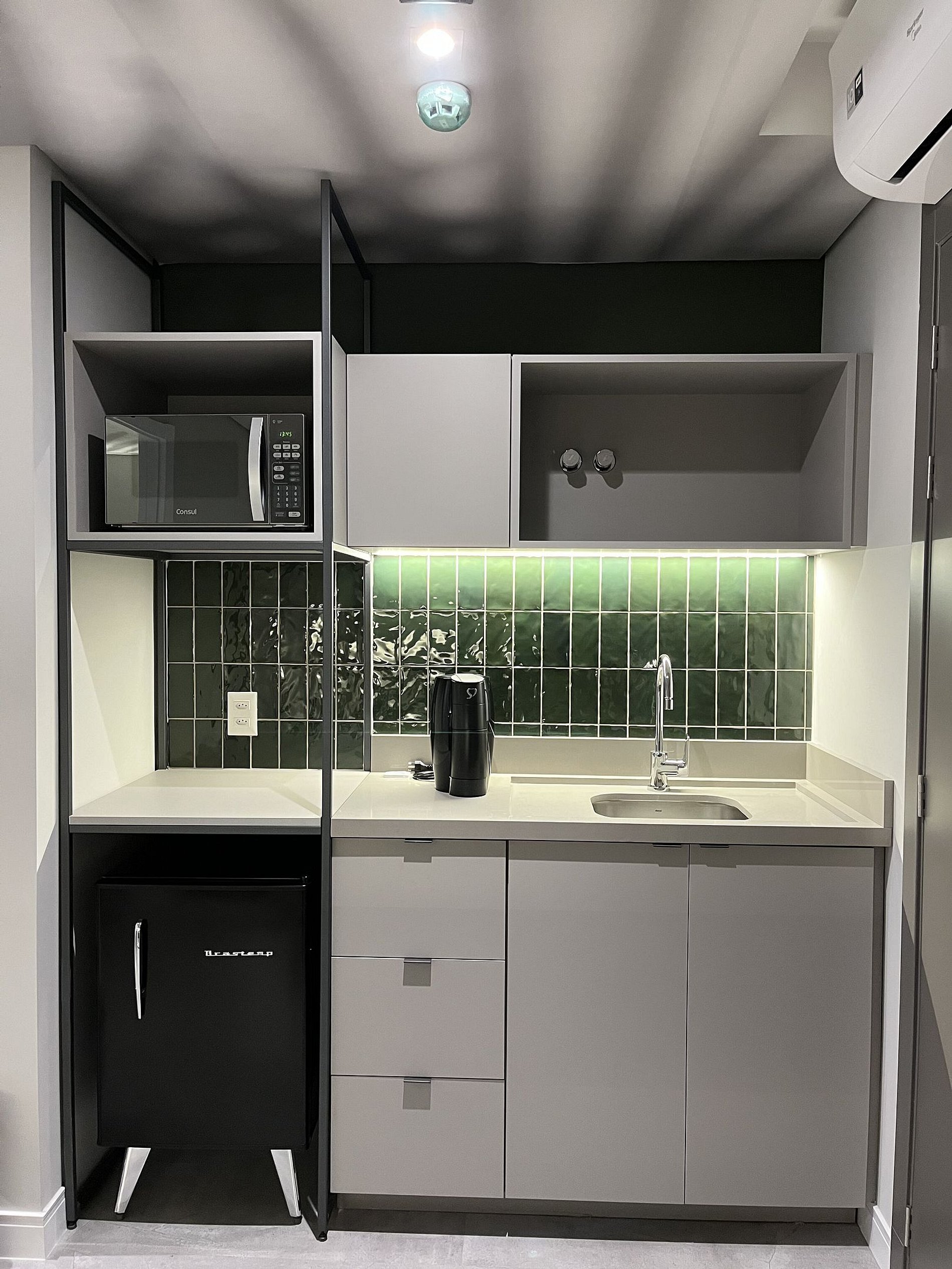 In the kitchen, the minibar, microwave, coffee maker, and basic utensils allow you to prepare anything from a quick breakfast to an evening snack.