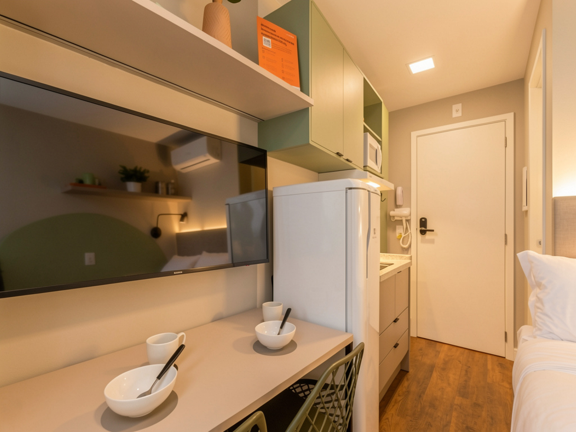 Apartamento Studio com 13m² , cozinha equipada, chuveiro a gás, internet de alta velocidade, TV smart, cafeteira, vaporizador, filtro de água, cama viúva, ar condicionado, micro-ondas, espaço para home office ou estudo, geladeira e secador de cabelos. Um espaço inteligente que equilibra funcionalidade e estilo para oferecer conforto e praticidade.