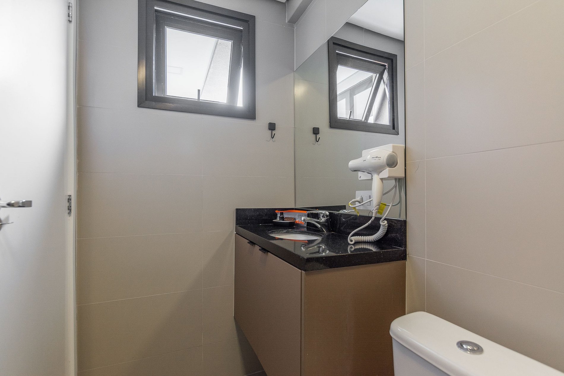Apartamento de 1 Quarto com sacada com 32m² , cozinha equipada, chuveiro a gás, internet de alta velocidade, TV smart, cafeteira, vaporizador, filtro de água, cama de casal, ar condicionado, micro-ondas, espaço para home office ou estudo, geladeira e secador de cabelos. Um espaço inteligente que equilibra funcionalidade e estilo para oferecer conforto e praticidade.