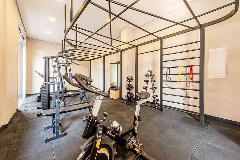 O acesso ao espaço acontece por reconhecimento facial. A senha da unidade será enviada após o seu check-in, através do aplicativo Xtay ou Web-check-in, conforme informado por mensagem. O condomínio conta academia, lavanderia paga à parte e mercadinho 24hrs