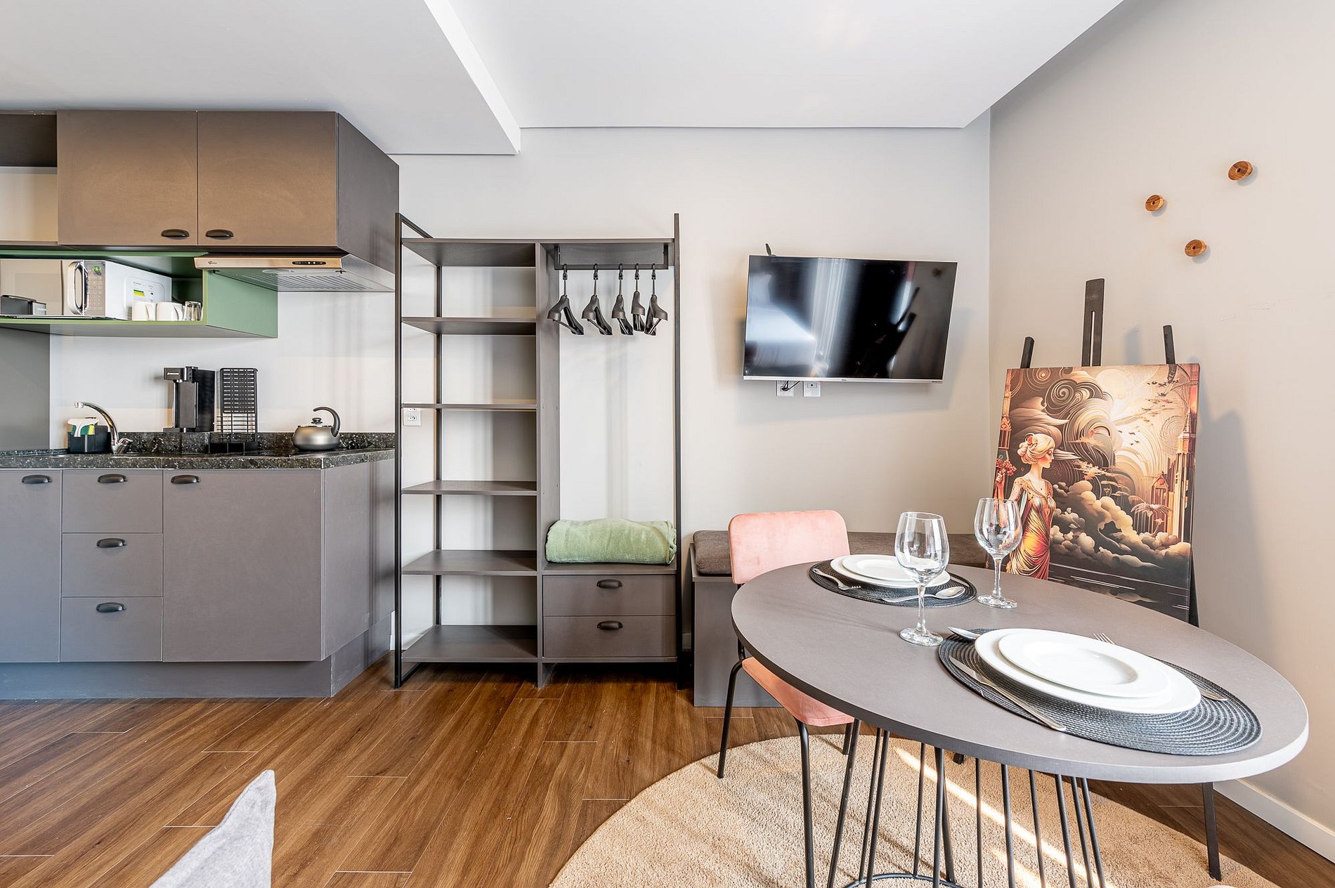 Descubra o conforto e a praticidade de se hospedar em um espaço pensado para tornar sua estadia inesquecível. Com 32m² cuidadosamente planejados, este apartamento oferece uma cozinha completa equipada com geladeira, micro-ondas, cooktop de indução e todos os utensílios para você preparar suas refeições com facilidade, seja um café da manhã rápido ou um jantar especial. A sala integrada conta com um sofá e uma TV para seus momentos de lazer, além de uma mesa para duas pessoas, perfeita para trabalhar ou fazer suas refeições com tranquilidade.