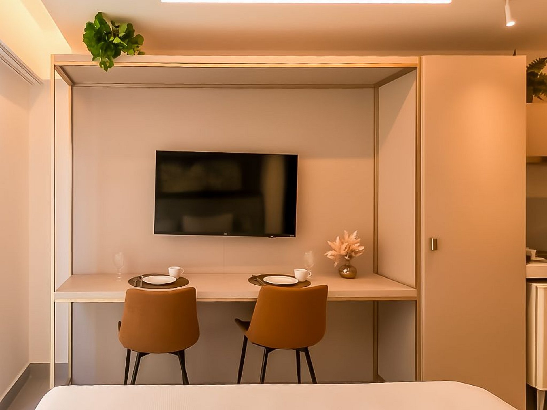 - TV de tela plana e Wi-Fi de alta velocidade para entretenimento ou home office